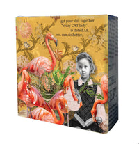 524 Crazy Cat Lady (flamingos!) Mini Canvas